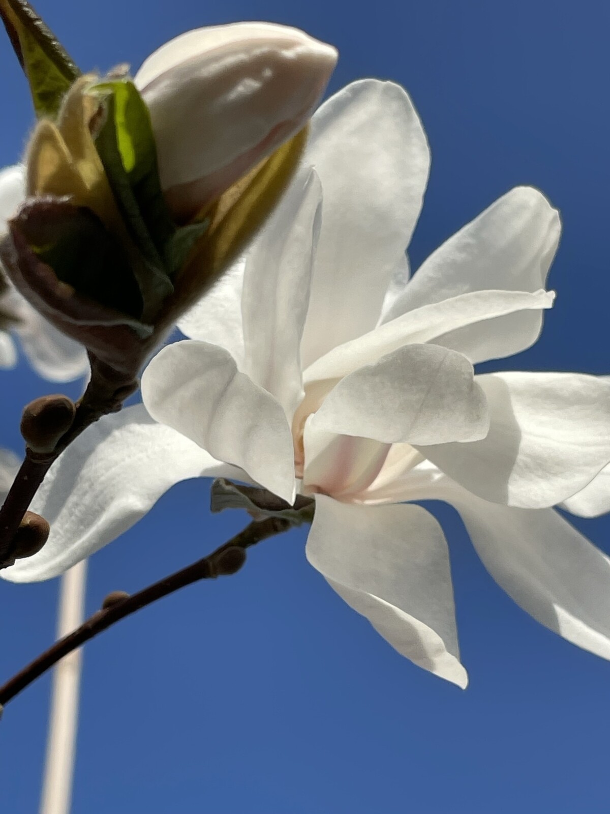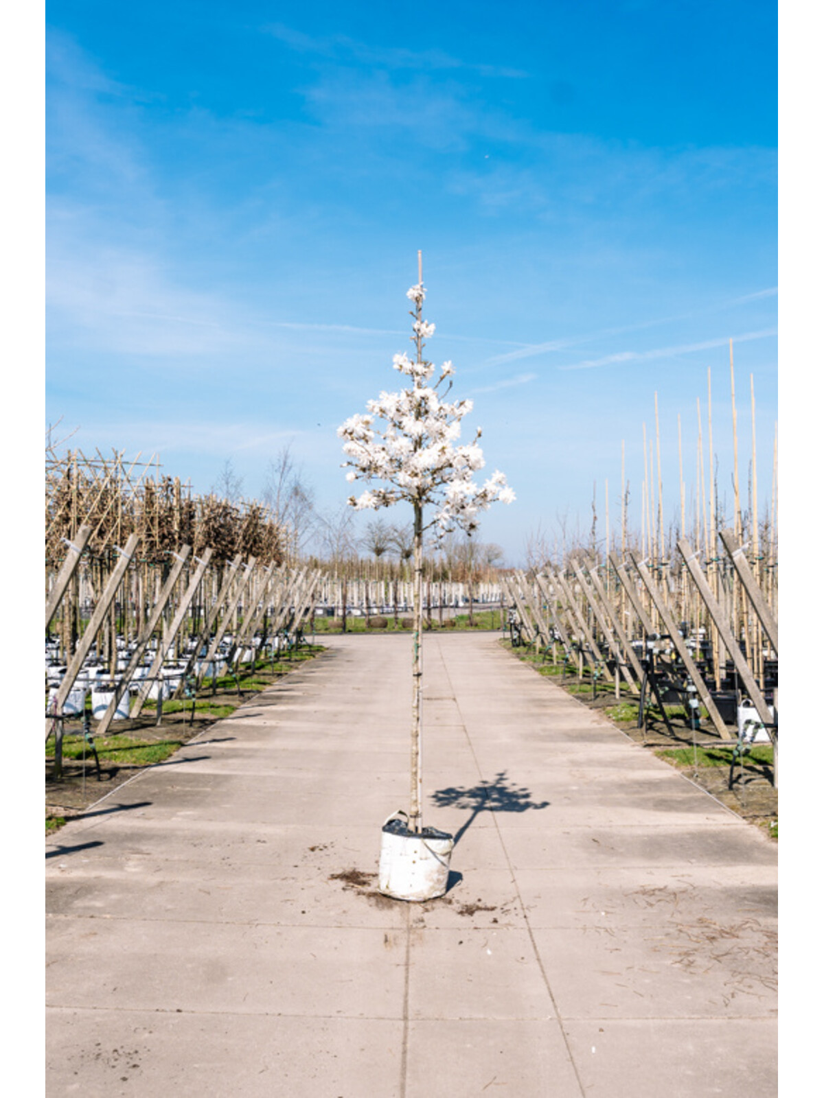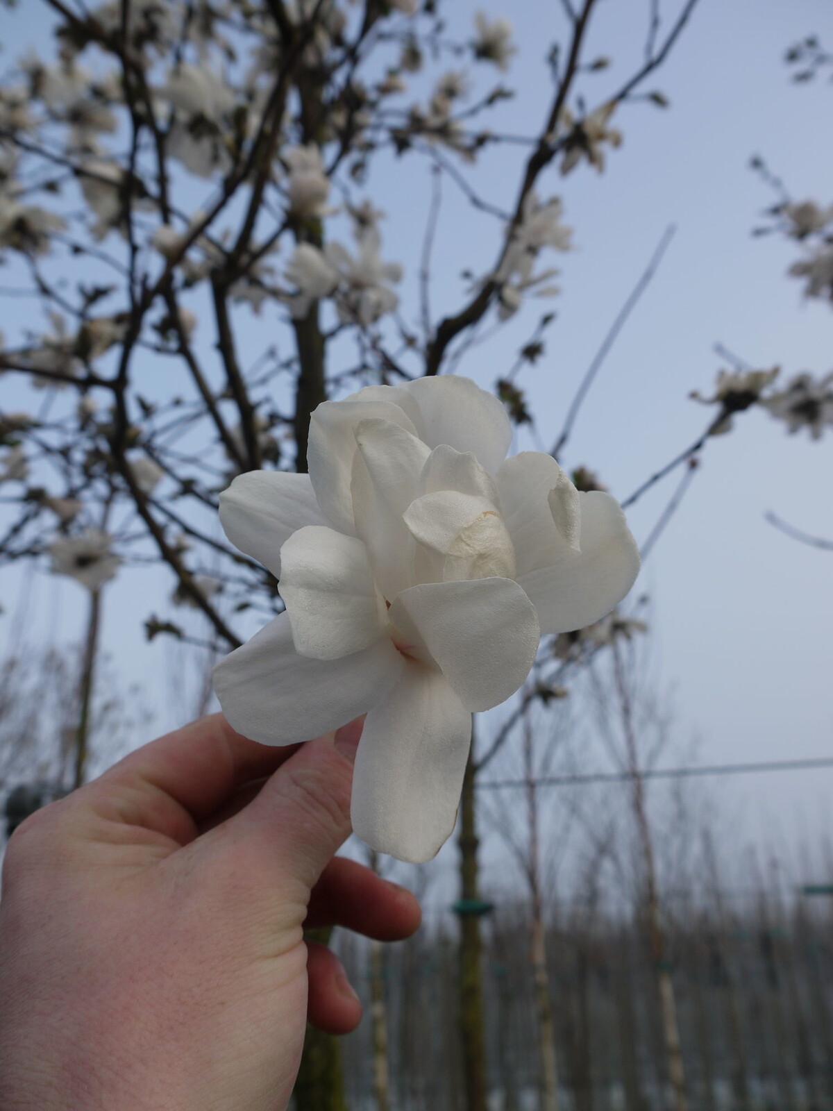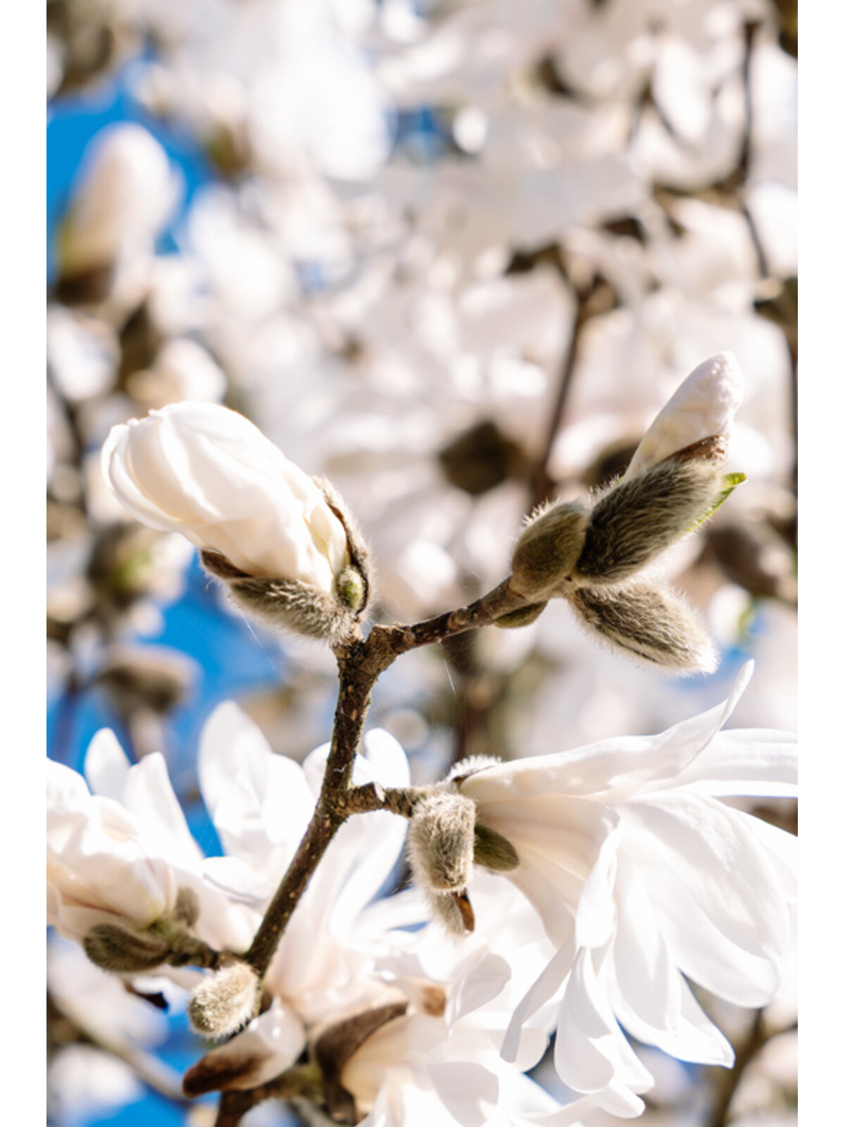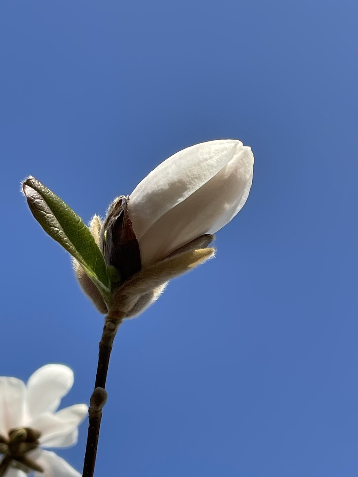 Diese Magnolie blüht im frühen Frühjahr, meist im März oder April, mit wunderschönen weißen, sternförmigen Blüten, die einen zarten Duft verströmen.