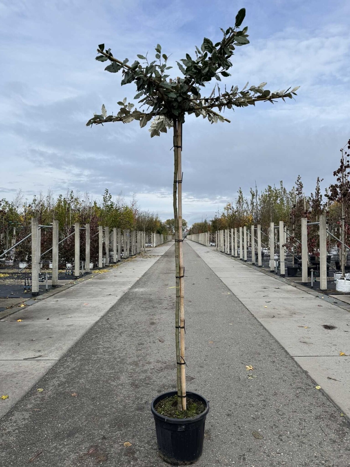 Wie groß wird ein Ölweide Dachbaum (Elaeagnus ebbingei)?Der Ölweide Dachbaum erreicht je nach Standort typischerweise ca. 3–4 m Höhe und Breite; in günstigen Lagen sind bis etwa 4–6 m möglich. Die Dachhöhe ergibt sich aus der gewählten Stammhöhe plus der flach geführten Krone.
