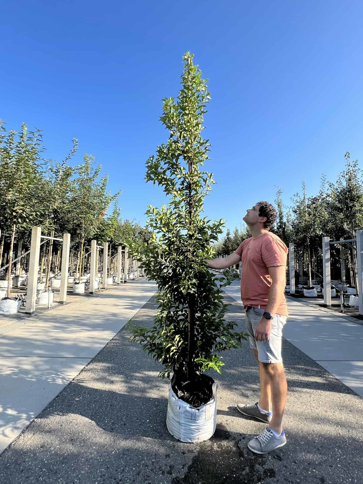 Die Angustifolia-Variante der Portugiesischen Lorbeerkirsche ist bekannt für ihre schmalen Blätter und ihre robuste Natur. Sie ist ideal für Hecken und als Solitärpflanze, wobei sie Privatsphäre und Schönheit bietet.