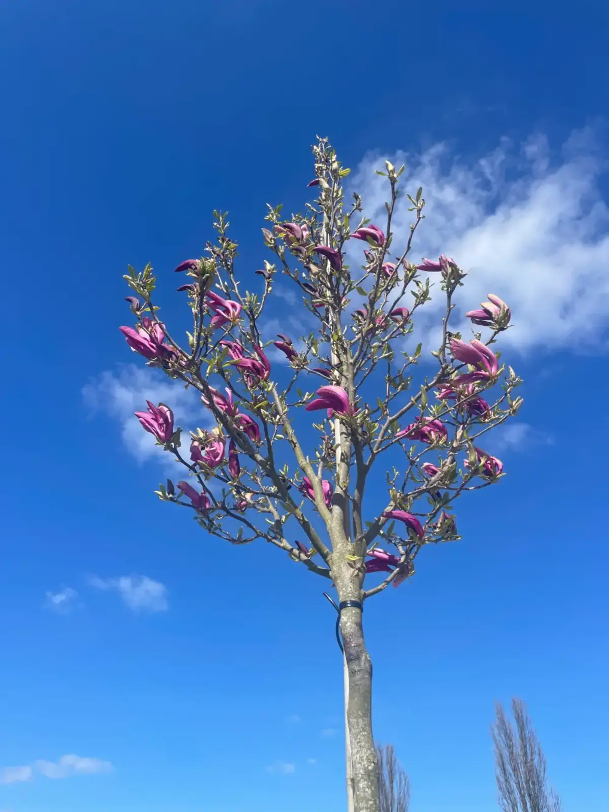 Die Wurzeln der Magnolia 'Susan' sind oberflächlich und nicht invasiv, sodass der Baum sicher in der Nähe von Pflasterflächen oder Gebäuden gepflanzt werden kann.