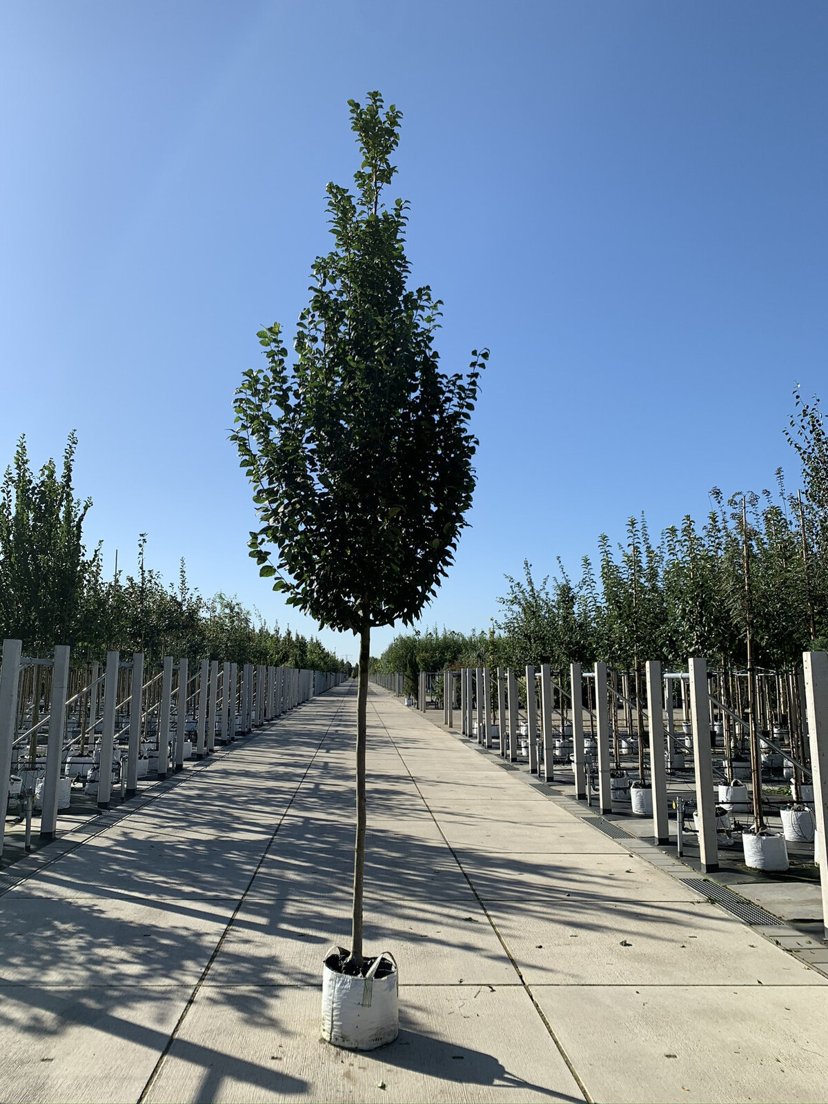 Dieser Baum hat einen schmalen, aufrechten Wuchs und benötigt etwa 4 Meter Platz in der Breite. Ideal für kleine Gärten oder enge Bereiche.
