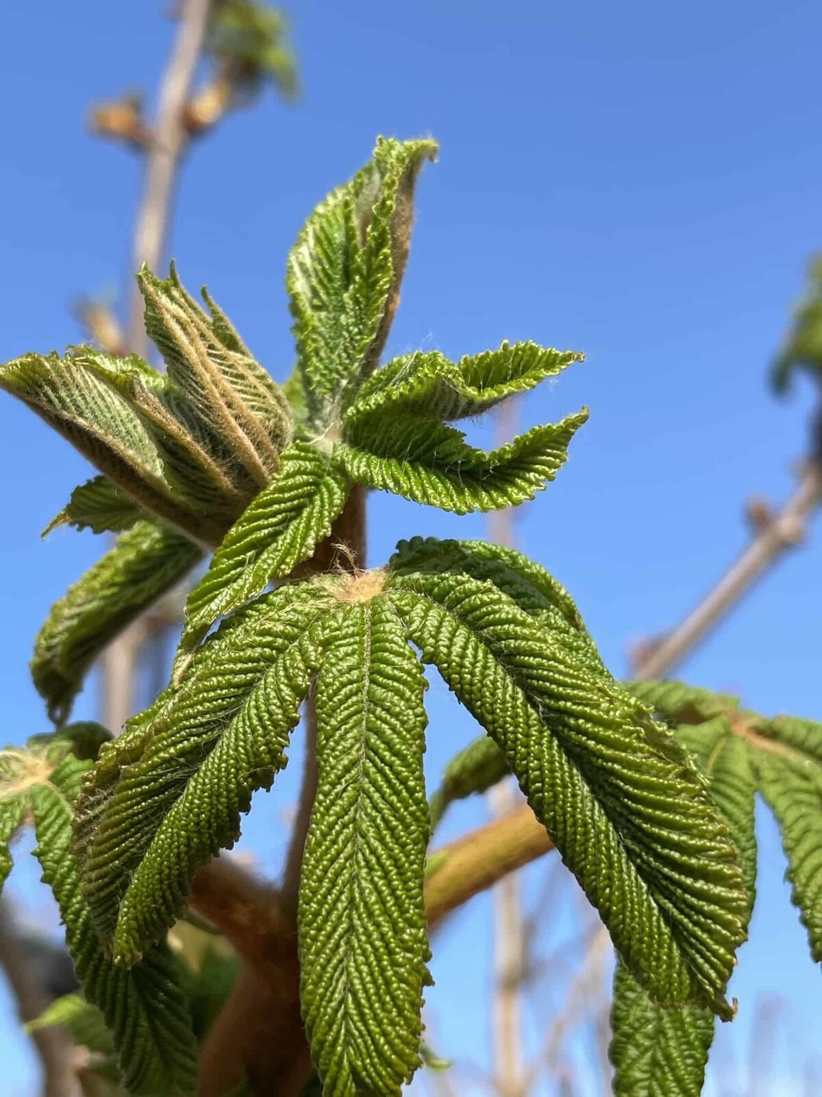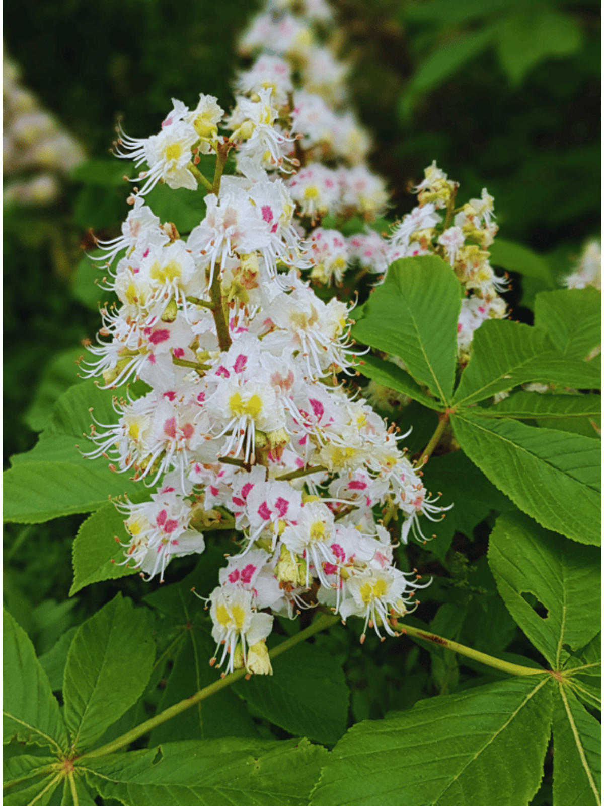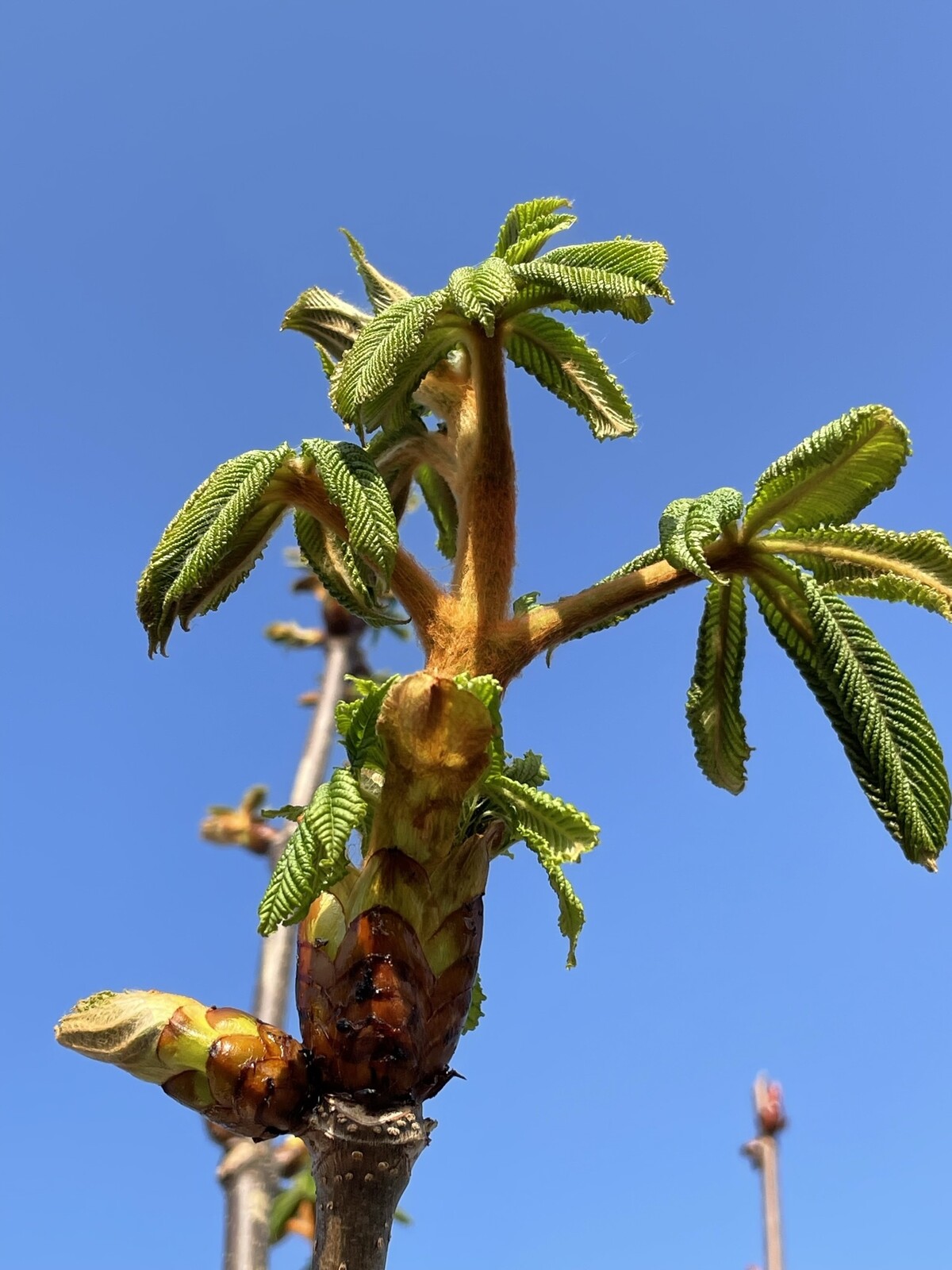 Im Frühling erwacht die Rosskastanie mit dem Austrieb der markanten Blätter und der spektakulären Blüte, die Bienen und andere Insekten anlockt.