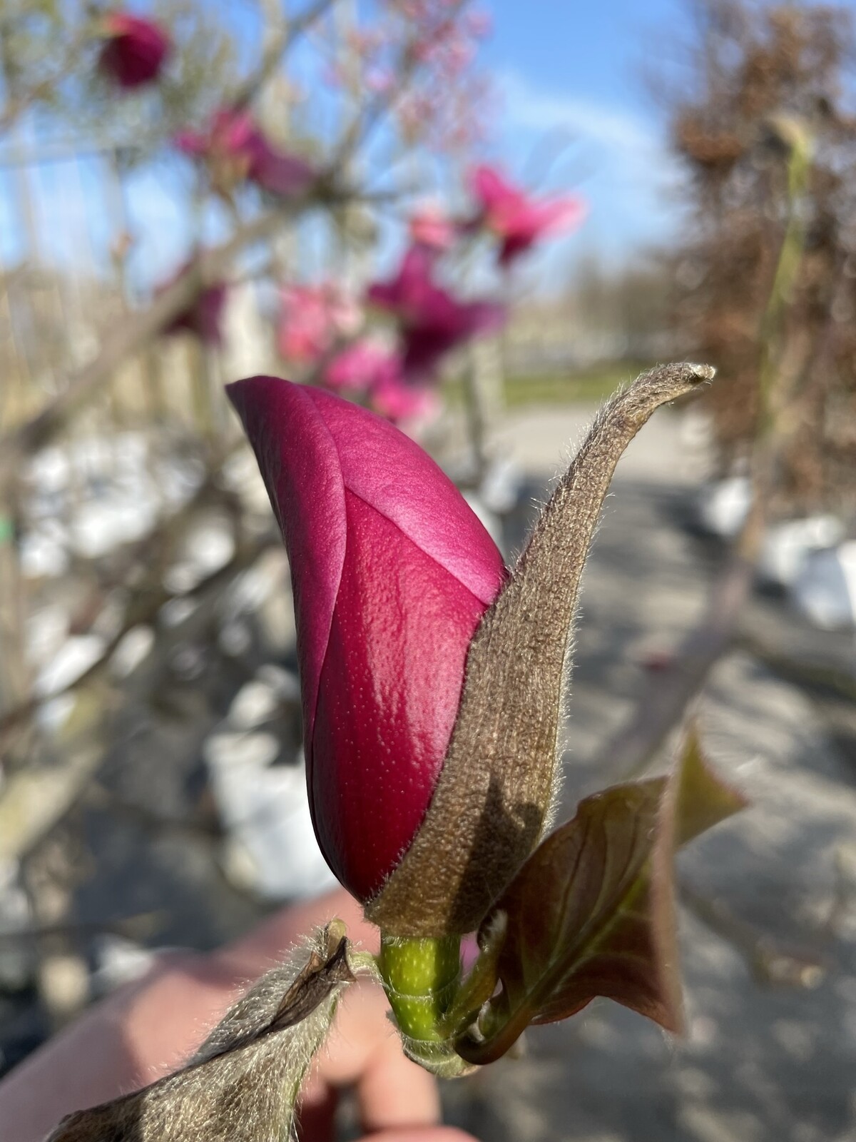 Entdecken Sie die prachtvolle Rotblütige Magnolie 'Spectrum' – ein wahrer Schatz für jeden Garten. Diese Sorte zeichnet sich durch ihre spektakulären, tiefroten Blüten aus, die im Frühling jeden Betrachter in ihren Bann ziehen. Nicht nur ihre auffällige Blütenfarbe, sondern auch ihre anspruchslose Pflege macht sie zu einem beliebten Exemplar für Gartenliebhaber. Ob als Solitärpflanze oder als Teil eines bunten Blumenbeets, die 'Spectrum' ist eine Bereicherung für jede Gartengestaltung.
