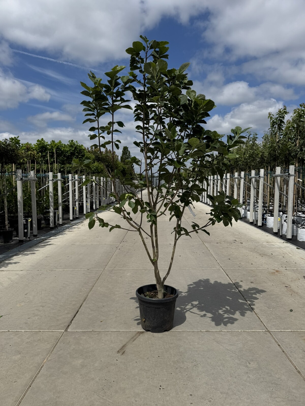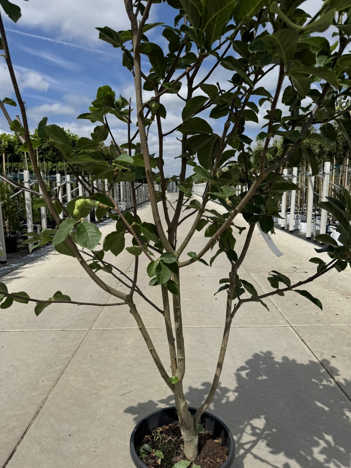 Gesundes, dichtes Laub bildet eine elegante Krone und spendet leichten Schatten; die Form bleibt harmonisch.