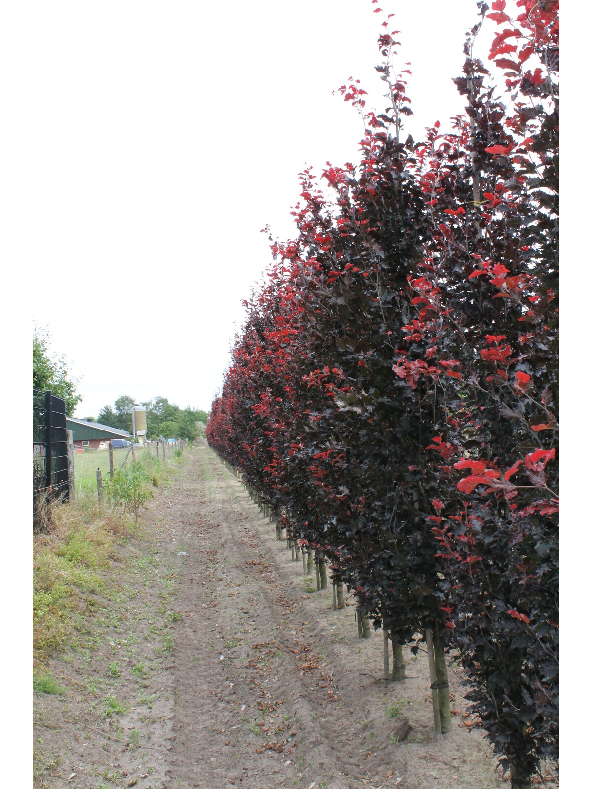 Die Säulen-Buche 'Red Obelisk' gedeiht am besten an einem sonnigen bis halbschattigen Standort, an dem die besondere Blattfärbung optimal zur Geltung kommt. Diese Buche bevorzugt gut durchlässige, leicht feuchte Böden, kann sich aber auch an etwas trockenere Bedingungen anpassen. Für kräftiges Wachstum und intensive Farben wird ein nährstoffreicher, leicht saurer bis neutraler Boden empfohlen.