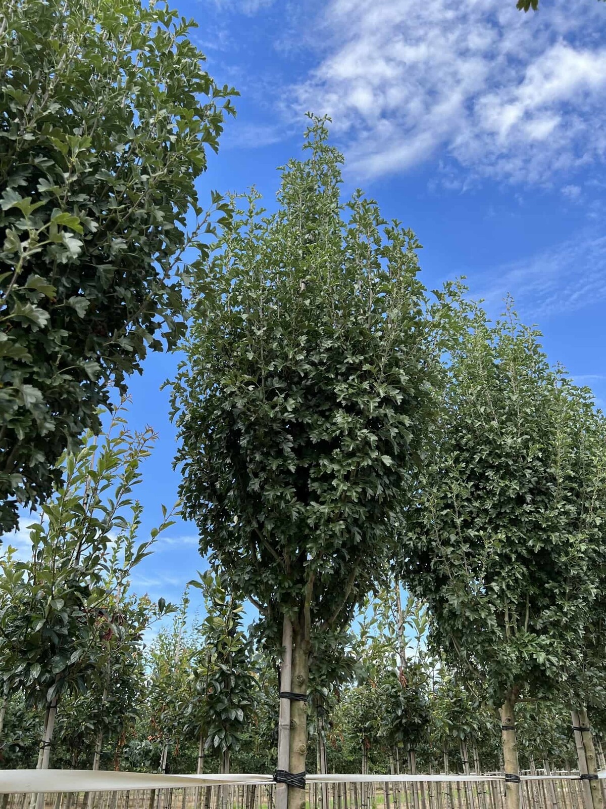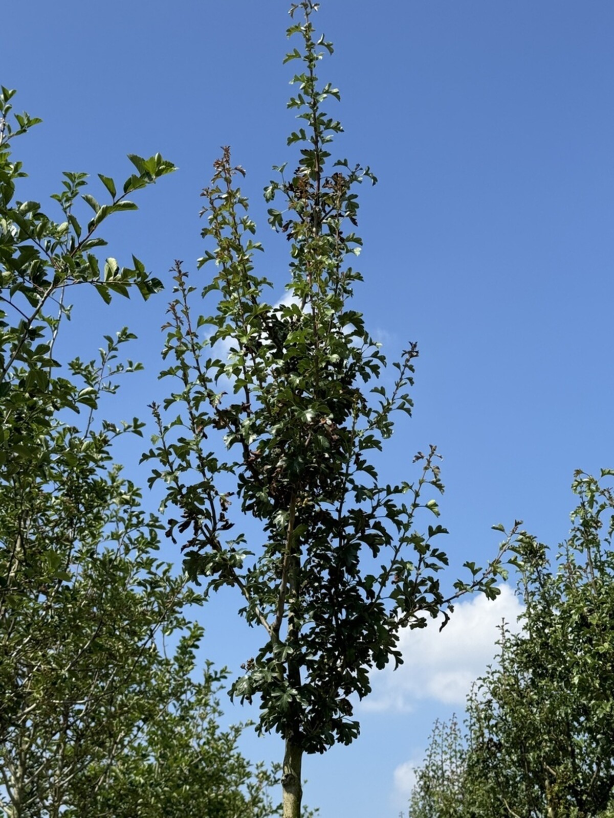 Der Säulen-Weißdorn 'Stricta' erreicht gewöhnlich eine Höhe von etwa 4 bis 6 Metern, was ihn ideal für kleinere Gärten oder als Teil einer Hecke macht.