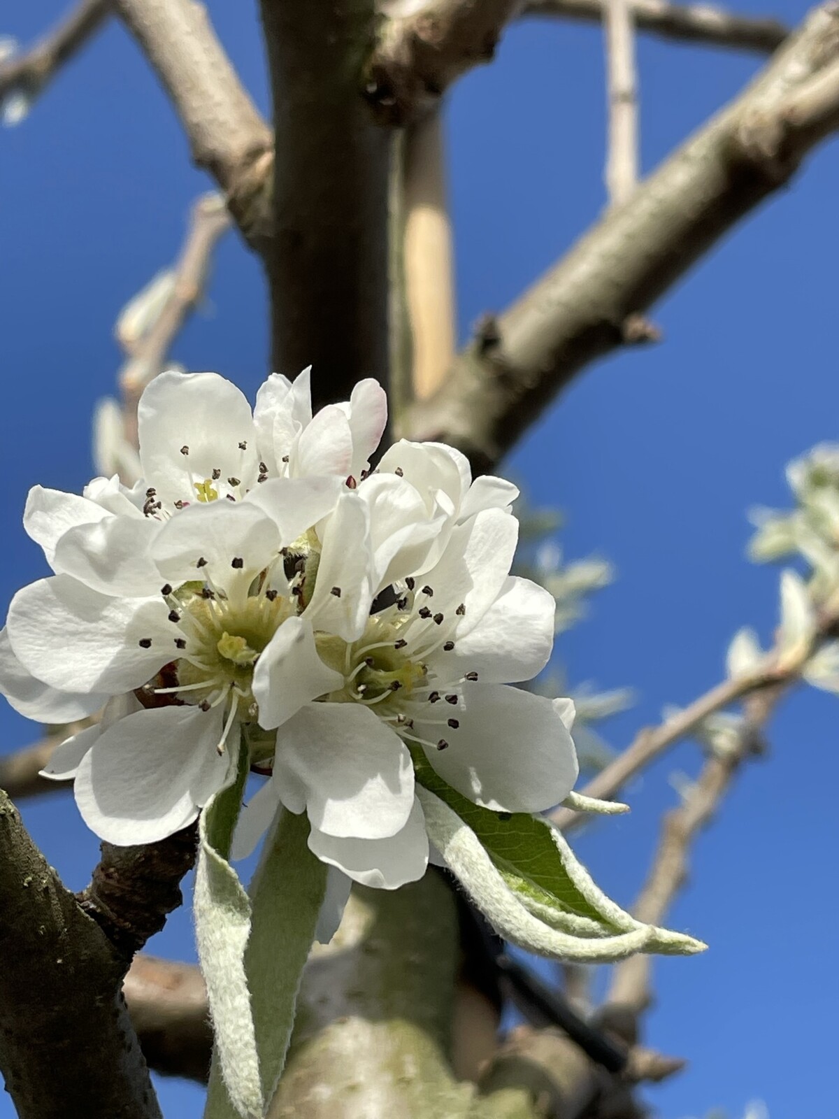 Welche Farbe haben die Blüten der Schneebirne?Die Schneebirne beeindruckt im Frühjahr mit strahlend weißen Blüten, die in üppigen Büscheln erscheinen und einen wunderschönen Kontrast zu den silbergrauen Blättern bilden.