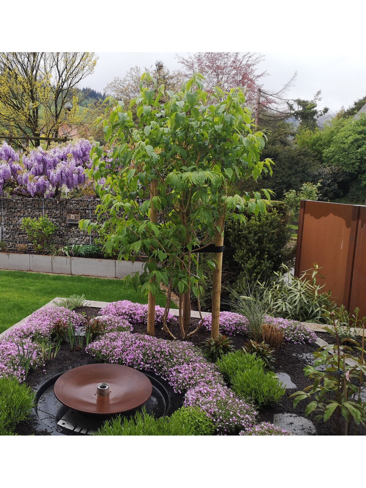 Frischer, gesund grüner Austrieb formt die vasenförmige Krone – ideale Zeit für eine behutsame Formkontrolle.