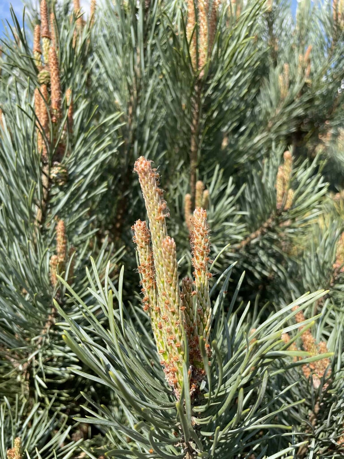 Neue Triebe erscheinen in einem frischen Blaugrün und verdichten die kompakte Krone. Ein idealer Zeitpunkt für leichte Formkorrekturen.