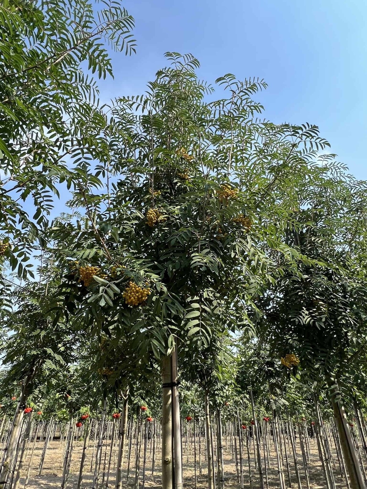 Mit ihrer kompakten Form, ihren strahlend gelben Beeren und ihrer attraktiven Herbstfärbung ist die Eberesche 'Schouten' ein echter Hingucker. Sie setzt in jedem Garten ein farbenfrohes Highlight und bringt Leben in jede Pflanzung.