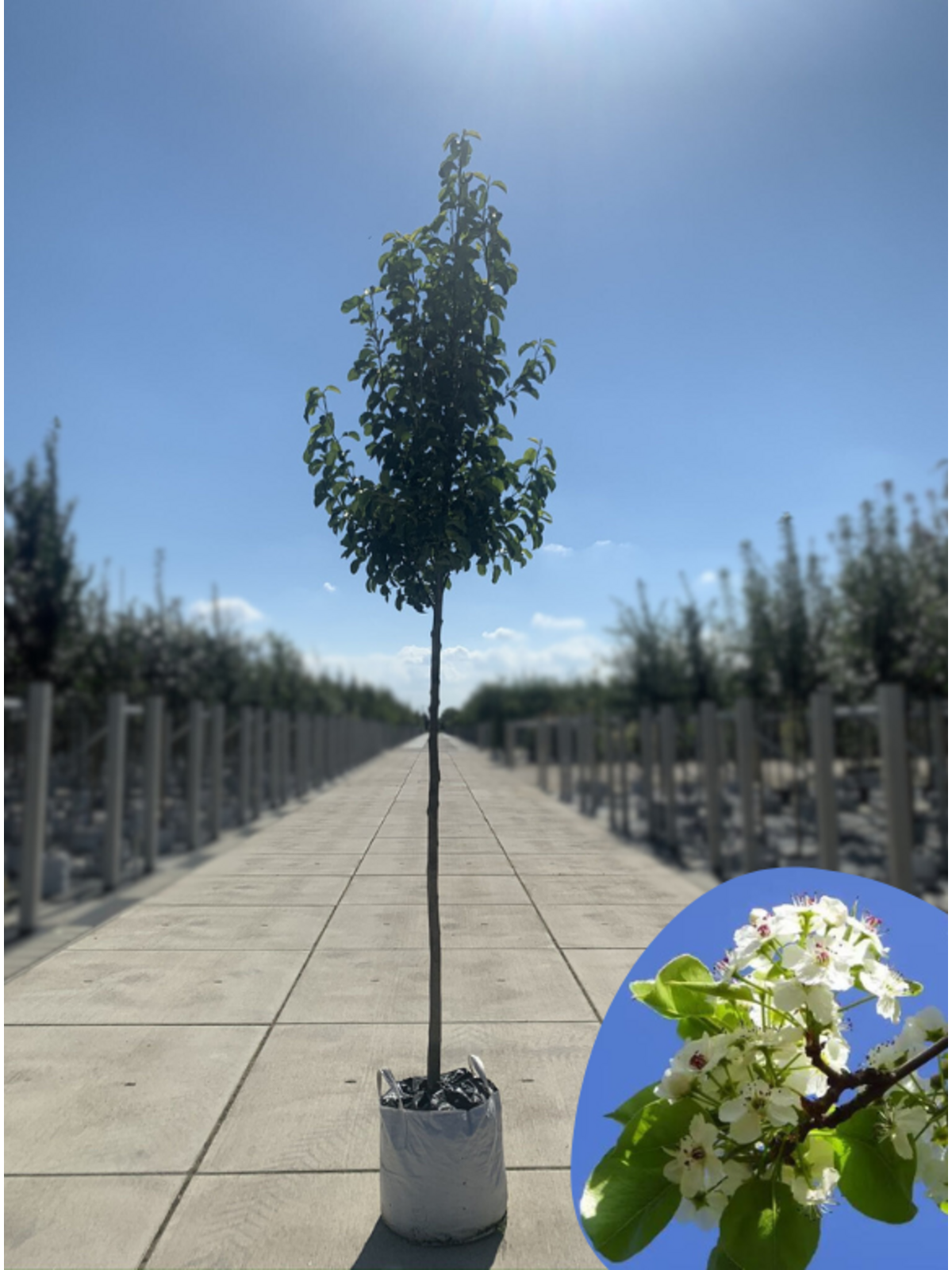 Diese besondere Sorte der Stadtbirne zeichnet sich durch ihre hohe, schlanke Wuchsform und die dichte, pyramidenförmige Krone aus. Im Frühling begeistert sie mit ihrer üppigen weißen Blütenpracht, die in den Sommermonaten zu einer attraktiven Fruchtbildung führt. Die Blätter der Stadtbirne verfärben sich im Herbst in wunderschöne Rottöne, die jedem Garten ein lebendiges Farbenspiel verleihen.