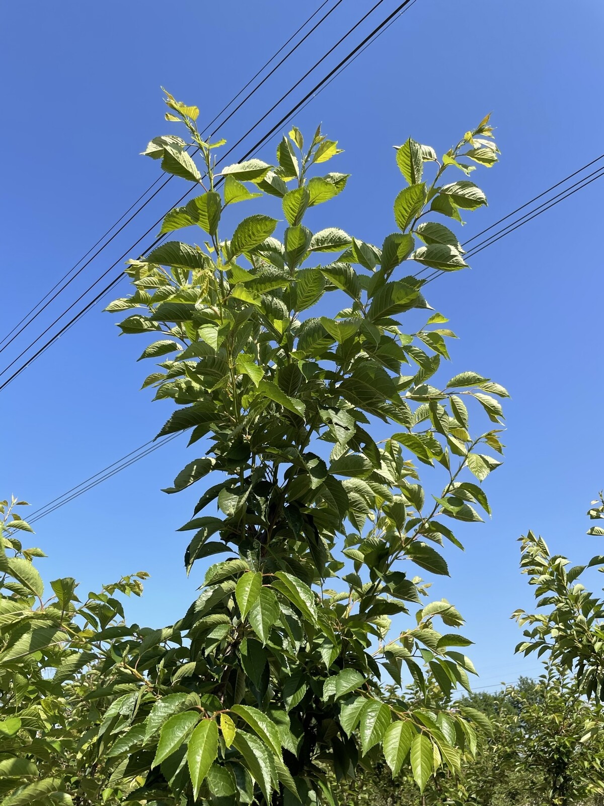 Dichtes, frischgrünes Laub formt eine sanft überhängende Krone und spendet leichten Schatten.