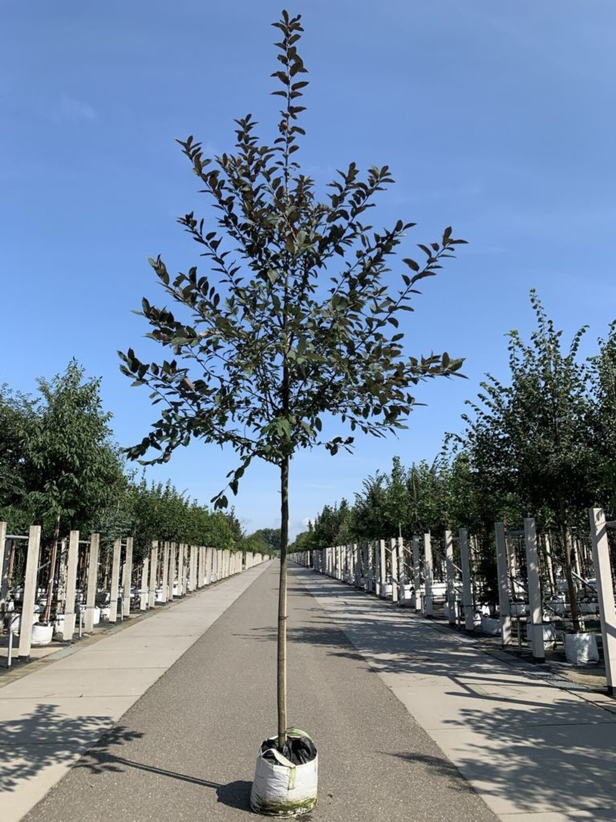 Die Traubenkirsche 'Colorata' ist ein mittelgroßer Baum, der eine Höhe von etwa 6 bis 8 Metern erreicht. Sie hat eine lockere, runde Krone und wächst gleichmäßig. Aufgrund ihrer begrenzten Größe und eleganten Optik eignet sie sich hervorragend als Solitärbaum in kleineren Gärten oder als Akzent in größeren Landschaften.