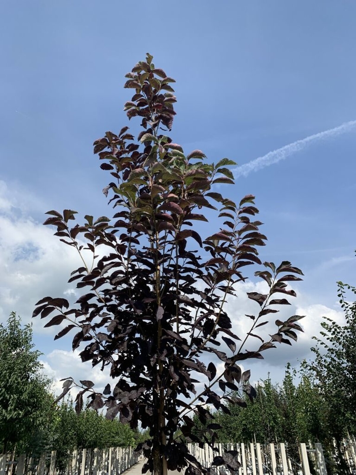 Die Prunus virginiana 'Shubert' wächst zu einem mittelgroßen Baum heran und erreicht eine Höhe von etwa 6 bis 8 Metern. Ihre runde Krone und der gleichmäßige Wuchs machen sie ideal als Solitärbaum in Gärten oder als Teil von Gruppenbepflanzungen. Dank ihrer einzigartigen Blattfarbe eignet sie sich hervorragend, um farbliche Kontraste in Grünflächen zu schaffen.