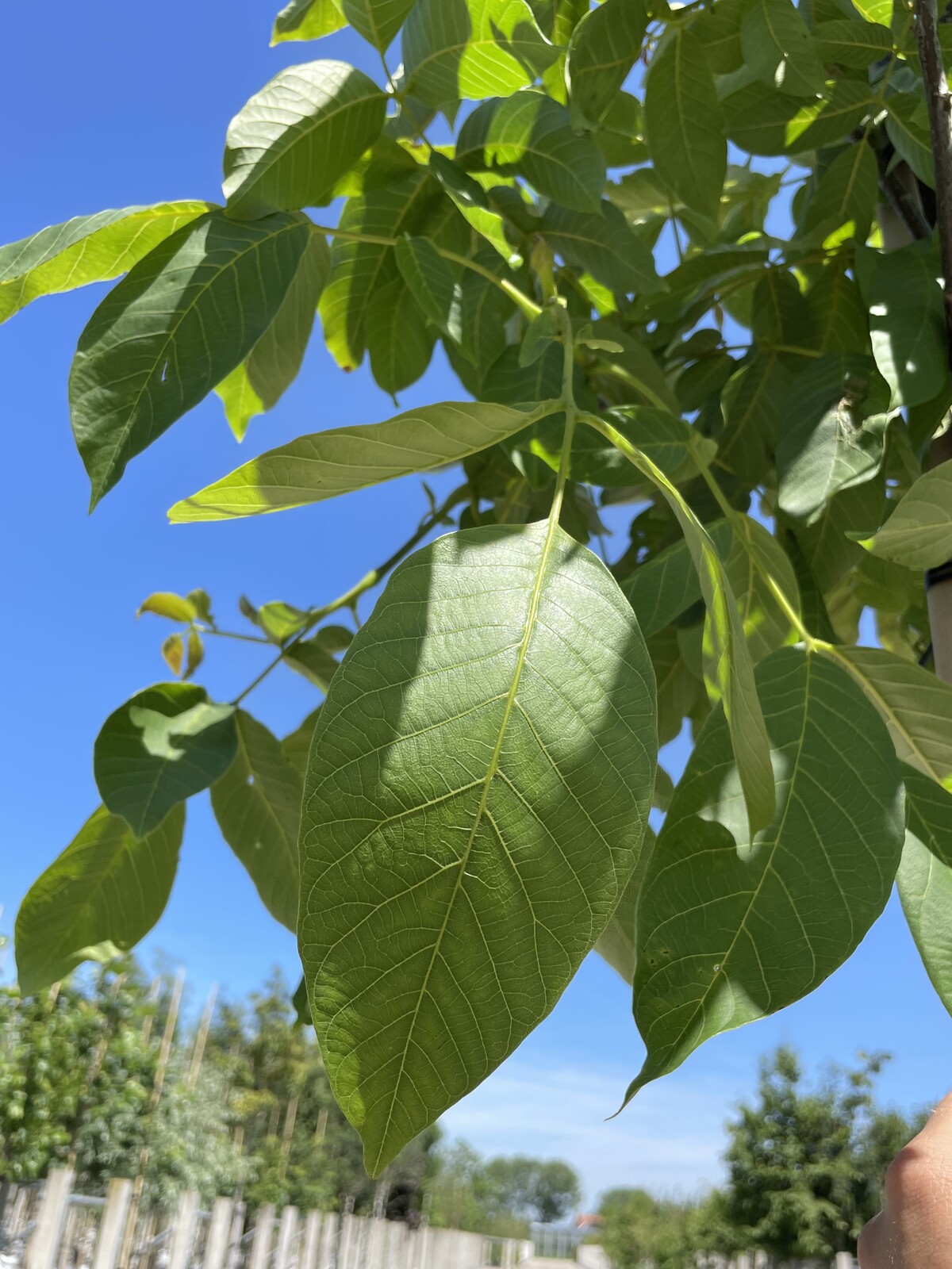 Der Walnusbaum 'Rita' ist bekannt für seine große, leckere Walnuss. Der Baum hat eine breite, ausladende Krone und kann bis zu 4-10 Meter hoch werden. Die Blätter sind groß und gefiedert, und die Rinde hat eine charakteristische graue Färbung.