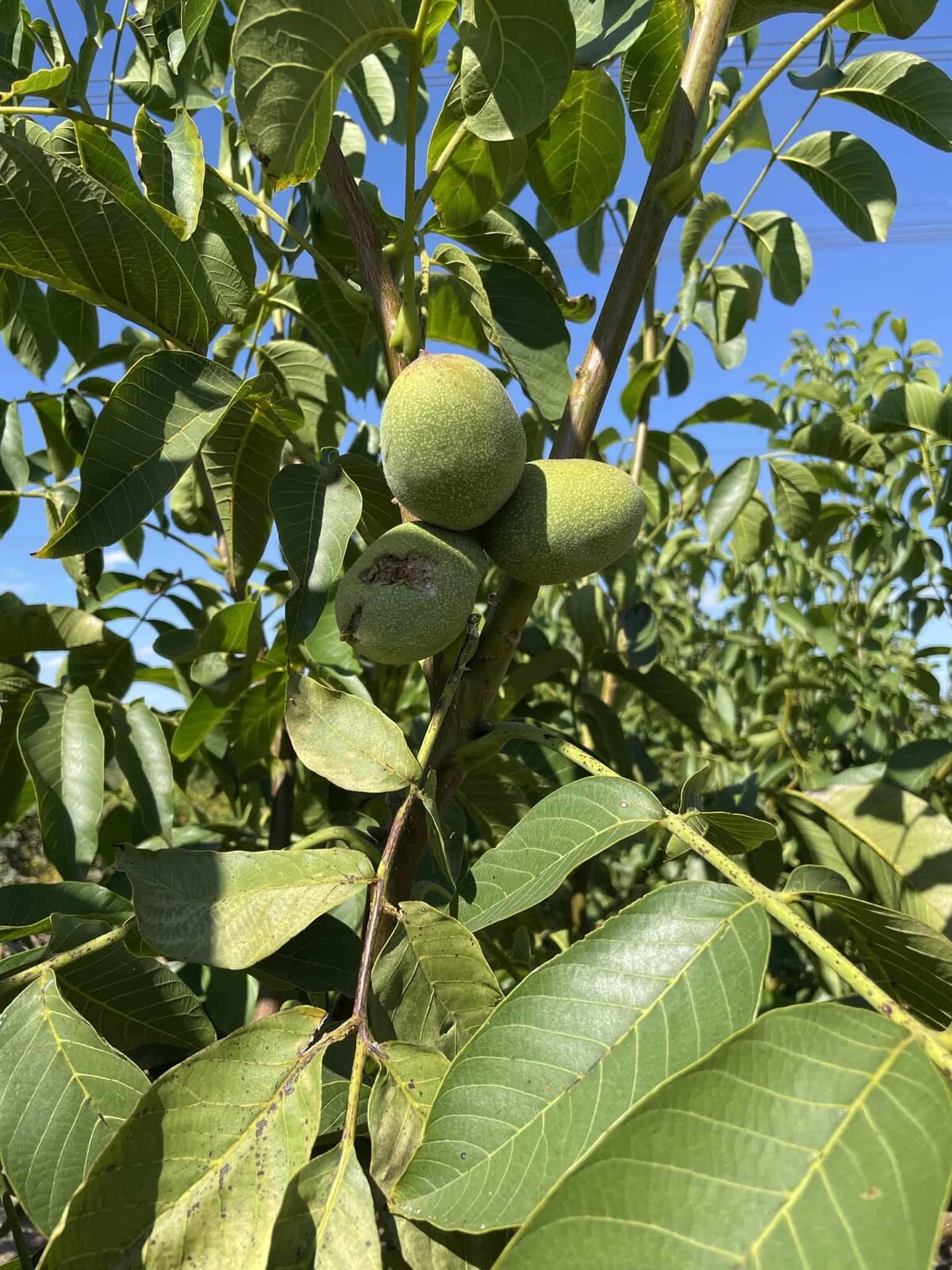 Walnussbäume „bluten“ stark: nur moderat schneiden, ideal im Hoch-/Spätsommer (Juli–August). Auslichten, reibende Triebe entfernen; starke Rückschnitte vermeiden und natürliche Form bewahren.