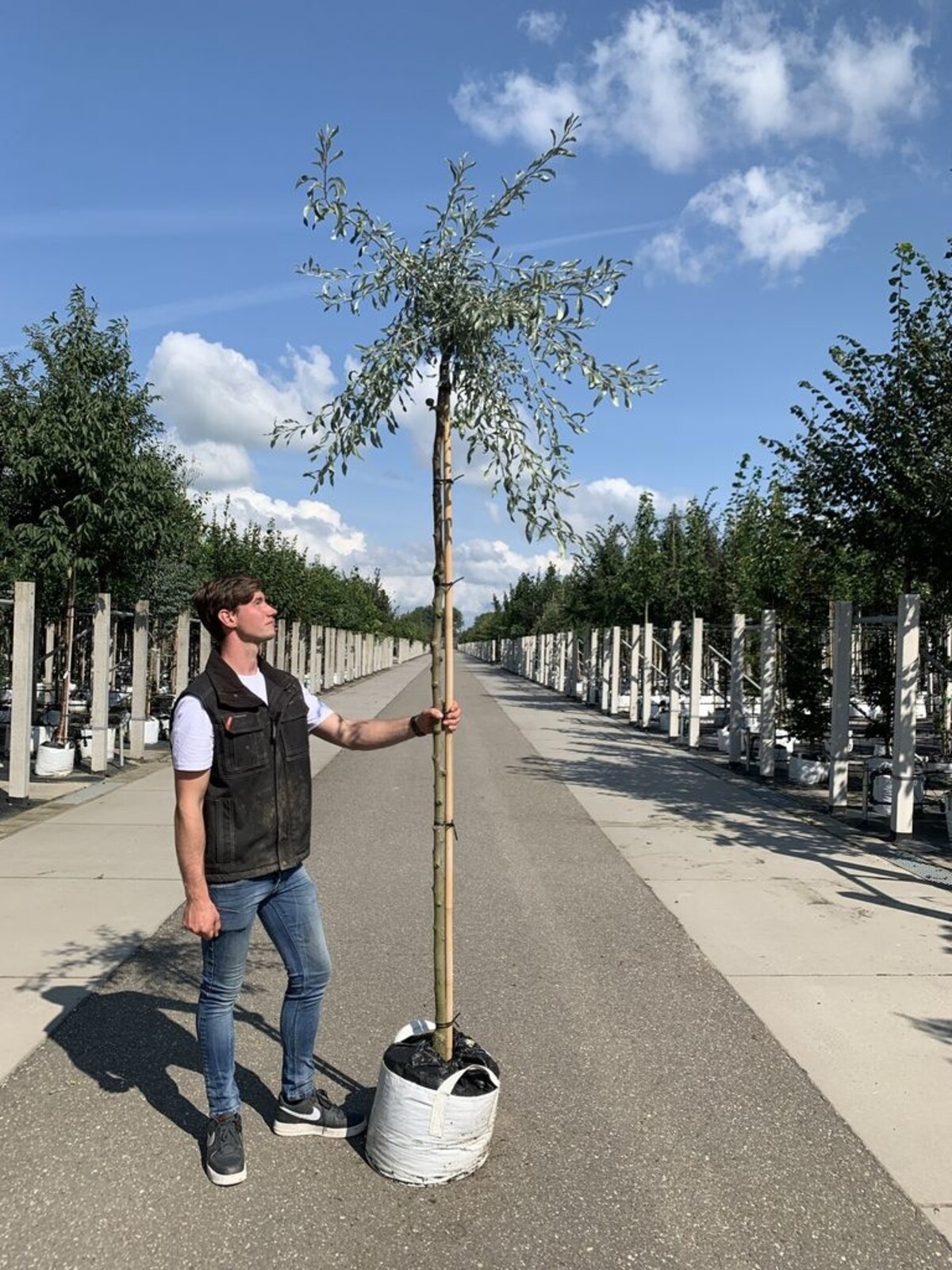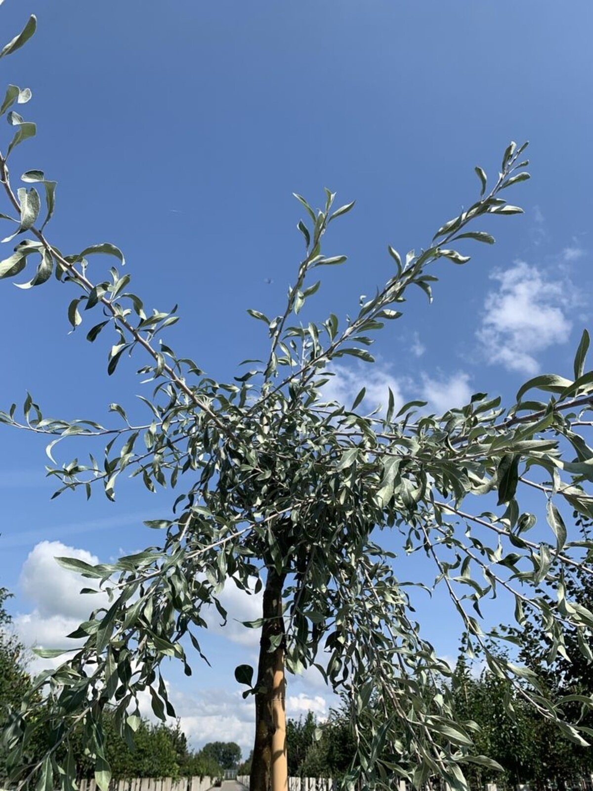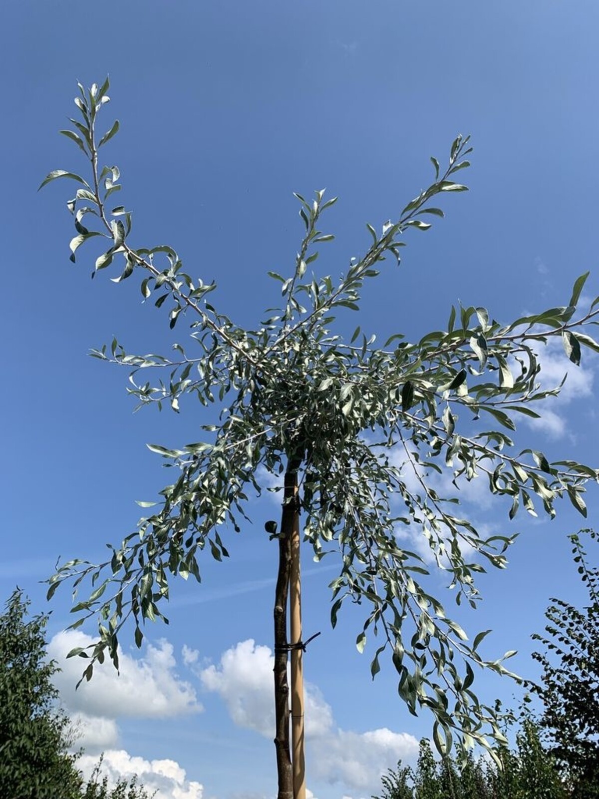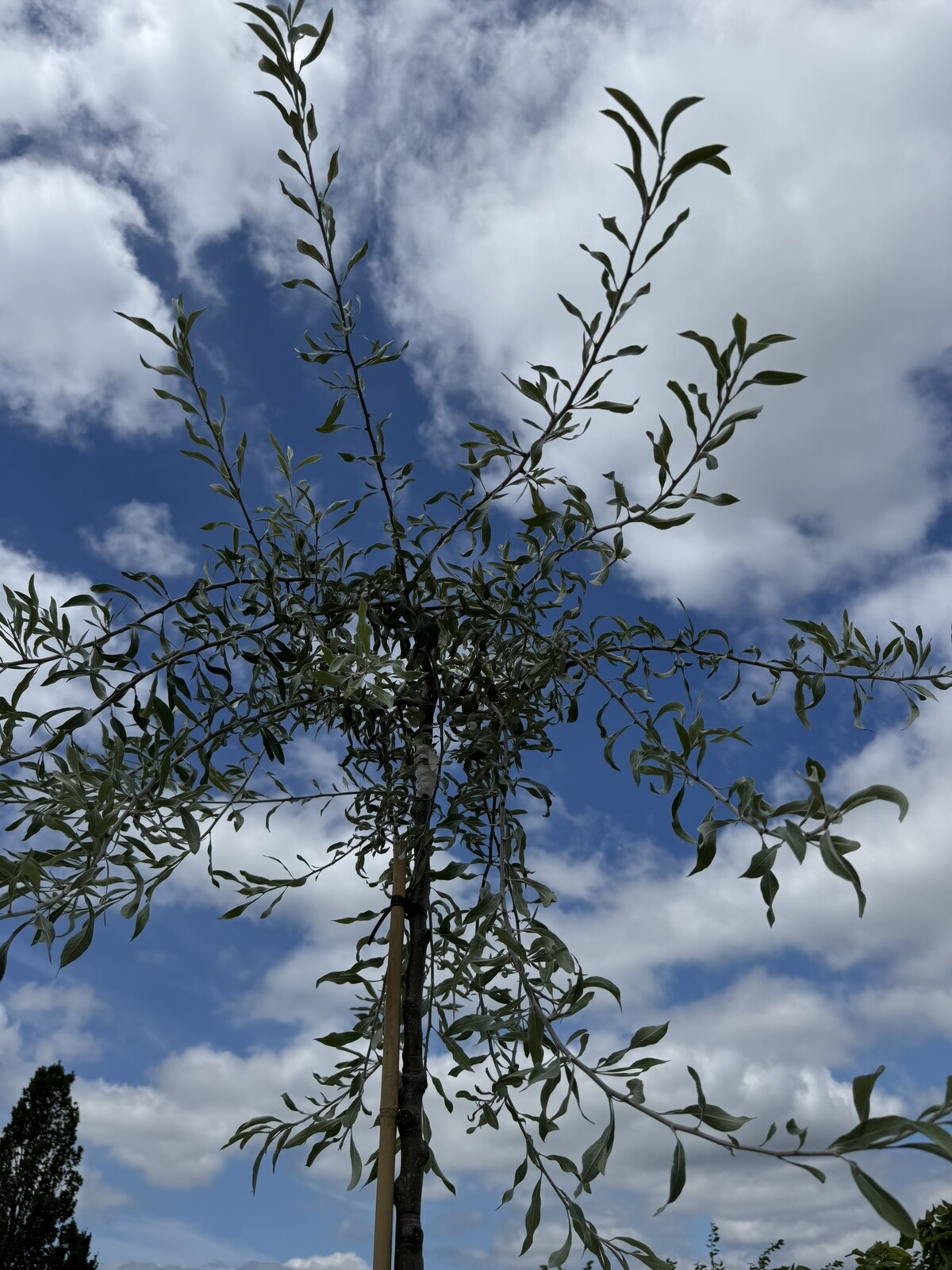 Es wird empfohlen, den Baum an einem geschützten Ort zu pflanzen, zum Beispiel in der Nähe einer Mauer oder eines Zauns. Dies bietet zusätzlichen Schutz vor starken Winden und hilft dem Baum, seine schöne Form zu bewahren. Es ist auch wichtig, dem Baum ausreichend Platz zum Ausbreiten zu geben. Wenn der Baum nicht regelmäßig beschnitten wird, kann er eine Breite von bis zu 4 Metern erreichen. Ein Abstand von etwa 3 bis 4 Metern zu anderen Bäumen oder Strukturen ist ideal. Im Allgemeinen ist die Pyrus salicifolia 'Pendula' ein relativ pflegeleichter Baum und gedeiht gut in verschiedenen Arten von Gärten und Landschaften.