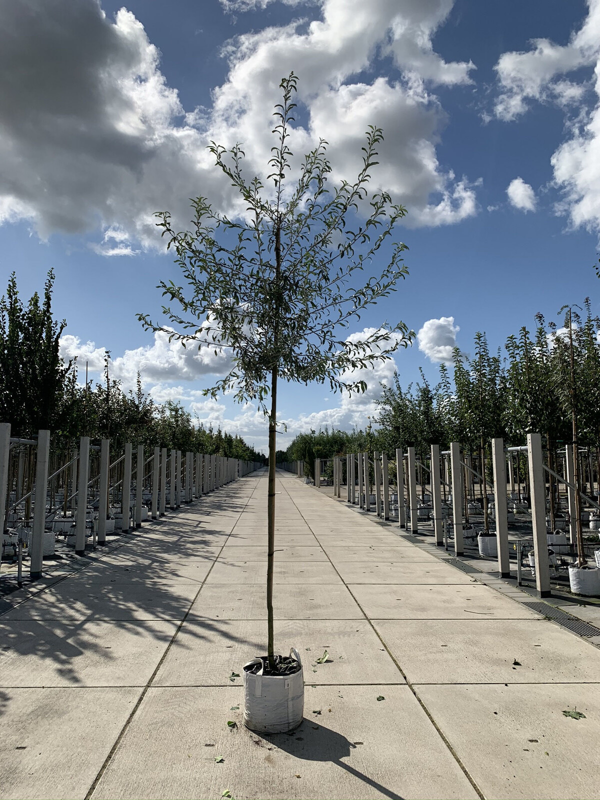 Welche Standortbedingungen bevorzugt die Weidenblättrige Birne Hochstamm?Ein sonniger bis halbschattiger Standort mit gut durchlässigem, fruchtbarem und mäßig feuchtem Boden ist ideal für die Weidenblättrige Birne Hochstamm. Sie passt sich gut an, aber ein optimaler Standort fördert gesundes Wachstum und eine reichhaltige Blüte.