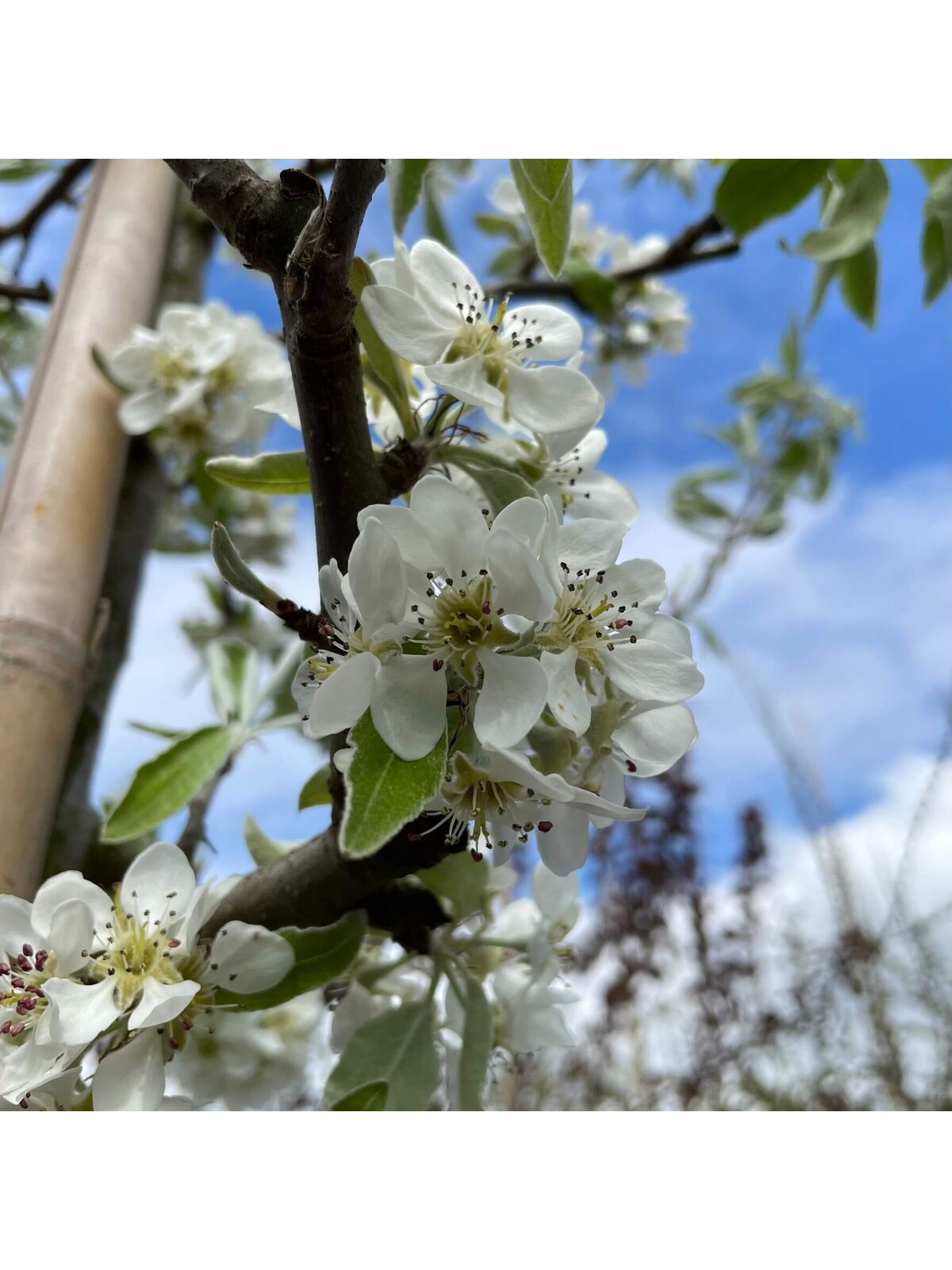Im Frühling ist die Weidenblättrige Birne Hochstamm ein echter Blickfang mit ihren weißen, duftenden Blüten, die Bienen und Schmetterlinge anziehen.