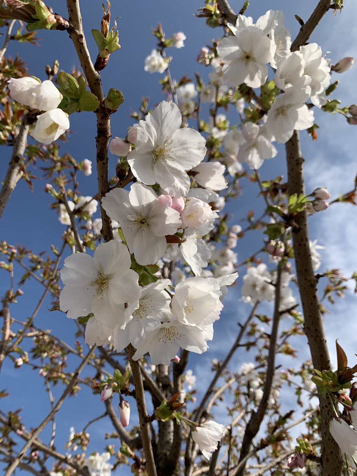 Im Frühling erstrahlt die Zierkirsche Taihaku mit großen, weißen Blüten, die jeden Betrachter verzaubern. Die Blütezeit ist kurz, aber spektakulär und symbolisiert die Schönheit und Vergänglichkeit der Natur.