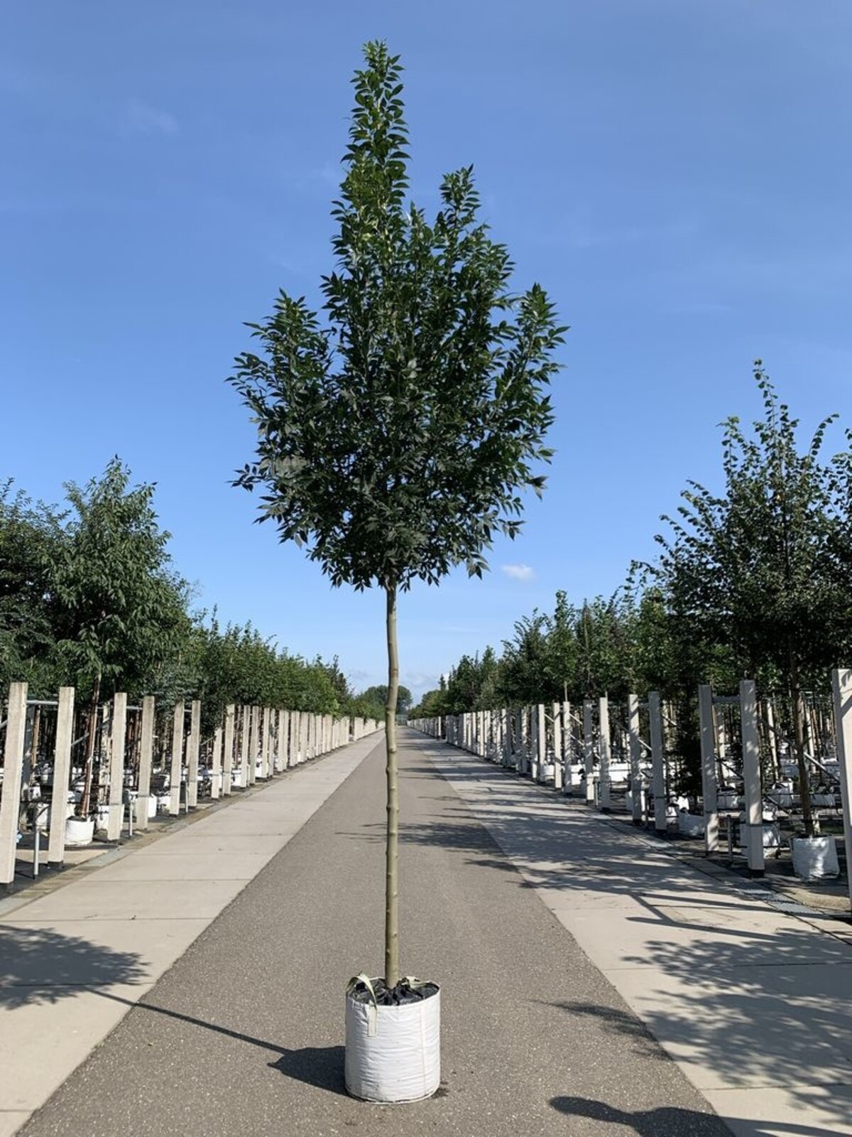 Die Weiß-Esche 'Autumn Purple' gedeiht am besten an einem sonnigen bis halbschattigen Standort. Sie stellt keine hohen Ansprüche an den Boden, solange dieser gut durchlässig ist. Ob Lehm-, Sand- oder Tonböden – dieser Baum passt sich gut an. Wichtig ist, dass der Baum genügend Platz hat, um zu wachsen und seine Krone voll zu entfalten. Regelmäßiges Gießen während trockener Perioden fördert ein gesundes Wachstum.