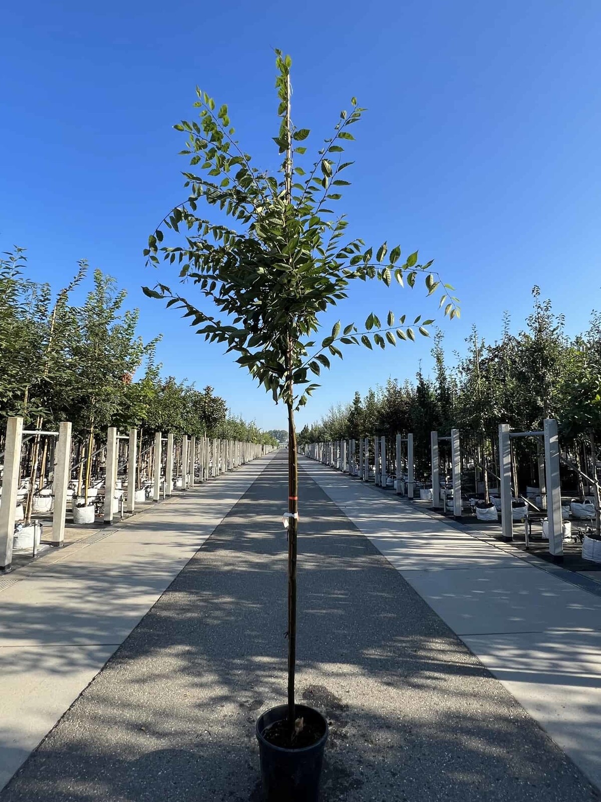 Die Zelkova serrata 'Village Green', ursprünglich ein amerikanischer Cultivar des japanischen Zelkova, ist eine perfekte Ergänzung für jede städtische Landschaft. Dieser Baum zeichnet sich durch seine beeindruckende Breite aus, mit einer Höhe von 10 bis 15 Metern und einer Breite von 5 bis 8 Metern.