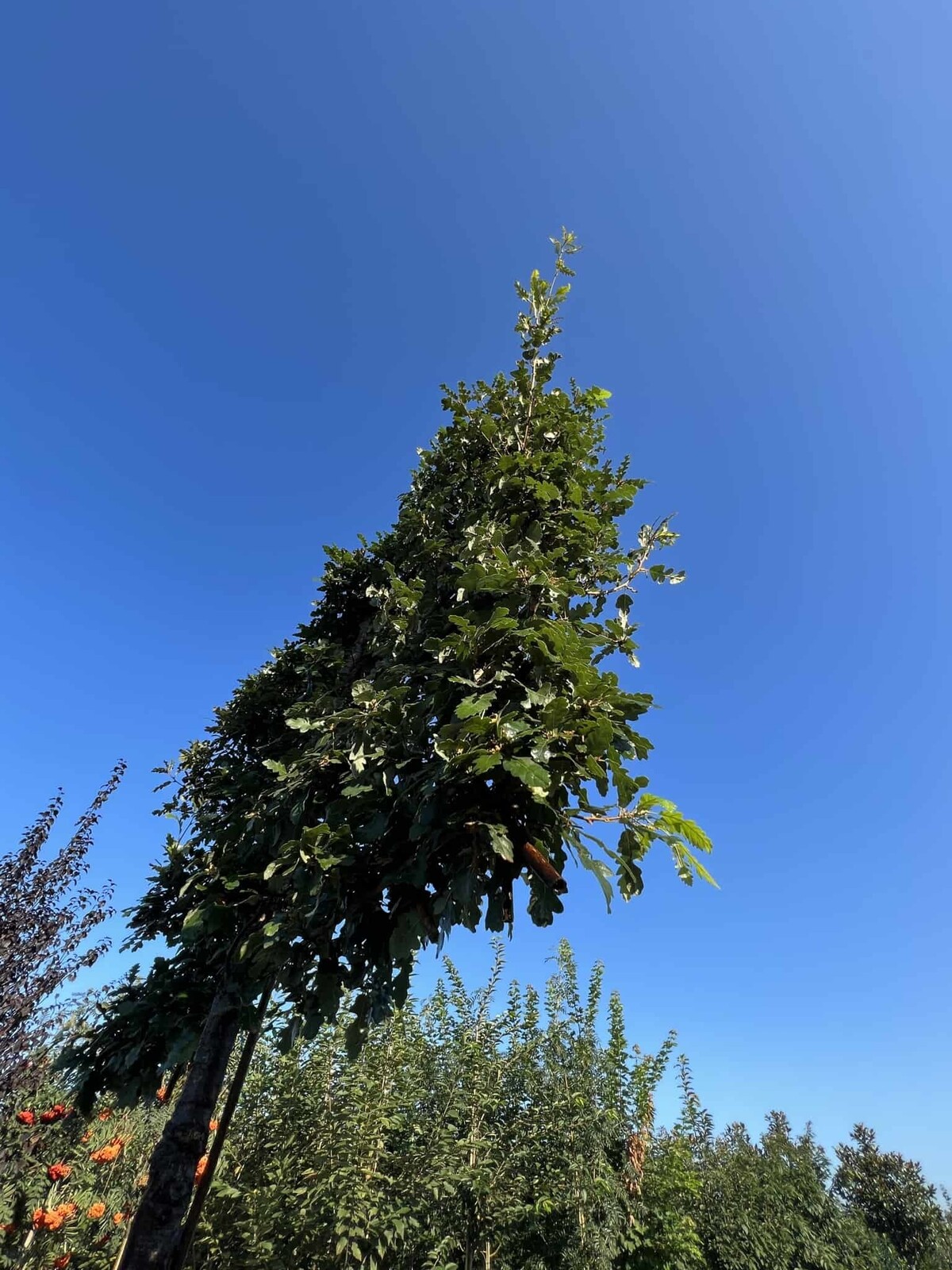 Die Zerreiche, wissenschaftlich bekannt als Quercus cerris, stammt aus Südosteuropa und Teilen Asiens. Die Tradition, diese Bäume als Spalier zu züchten, hat in Europa eine lange Geschichte, die ihre Vielseitigkeit und Beliebtheit in der Landschaftsgestaltung unterstreicht.