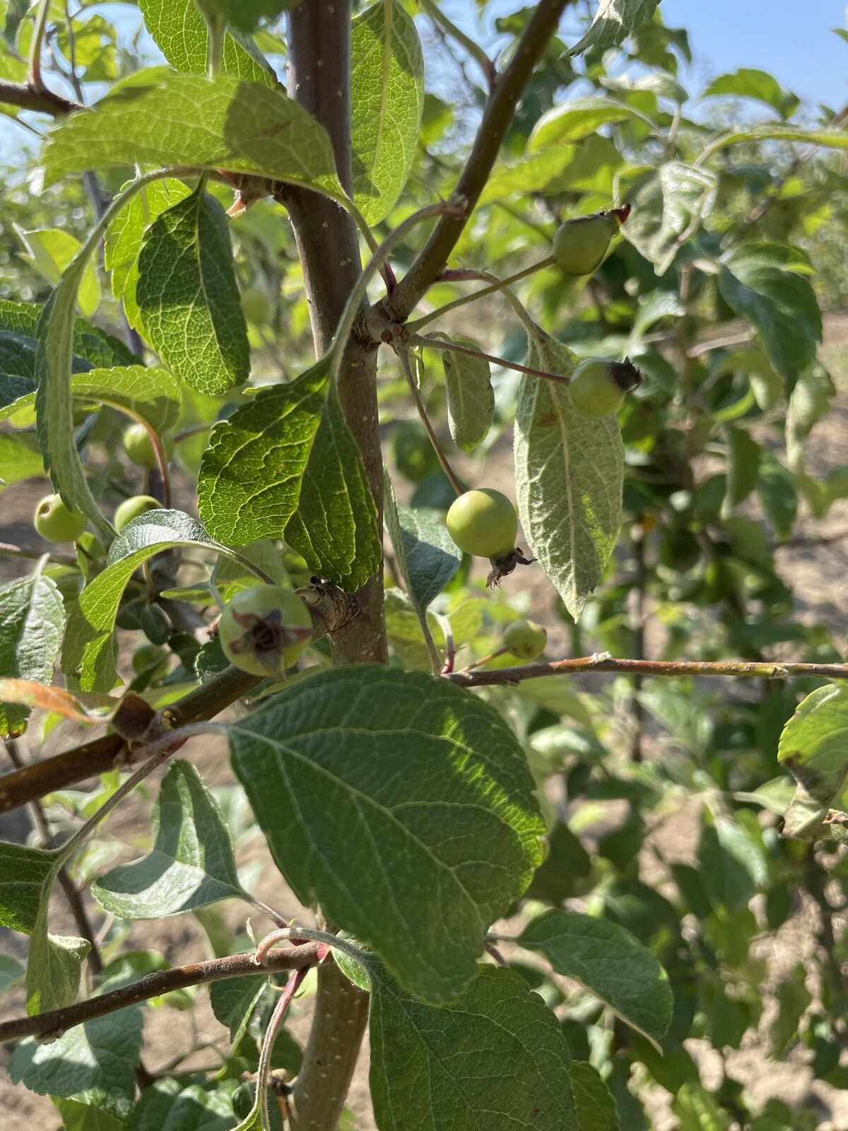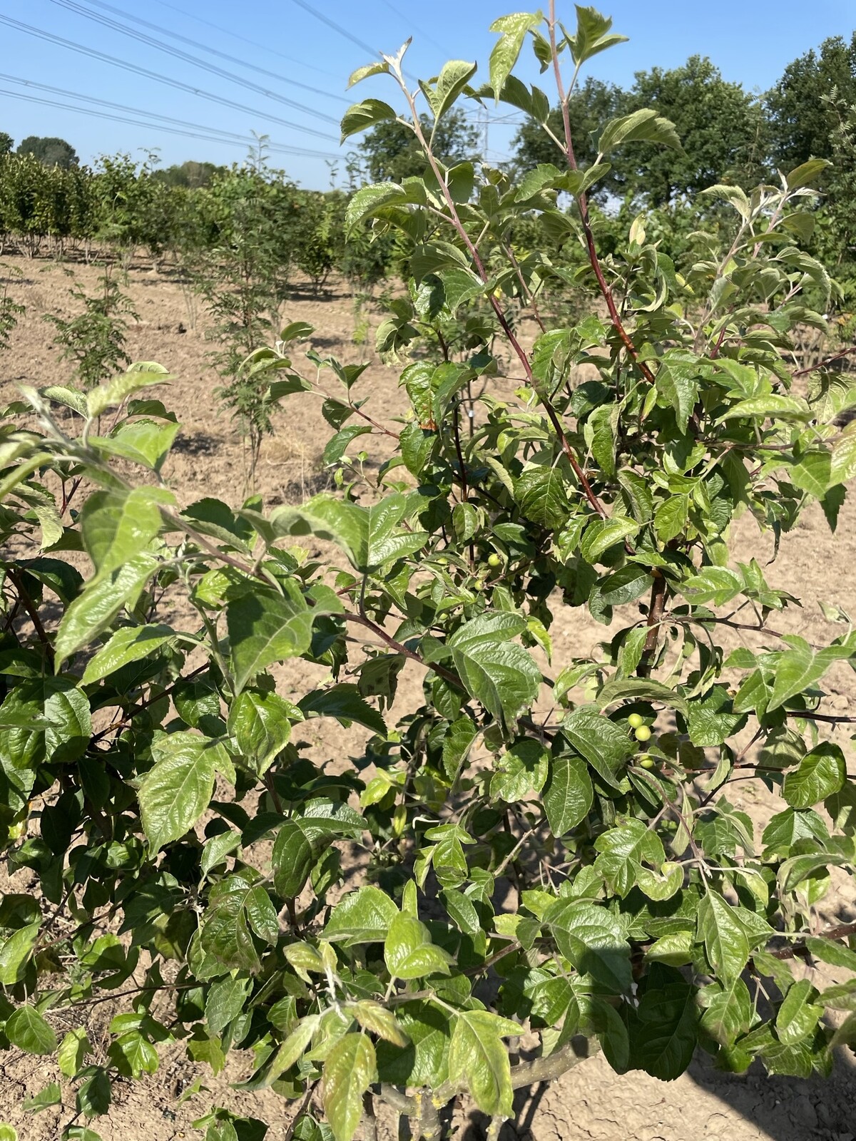 Dichtes, gesundes Laub; die Fruchtbildung nimmt zu und kündigt den Herbstschmuck an.
