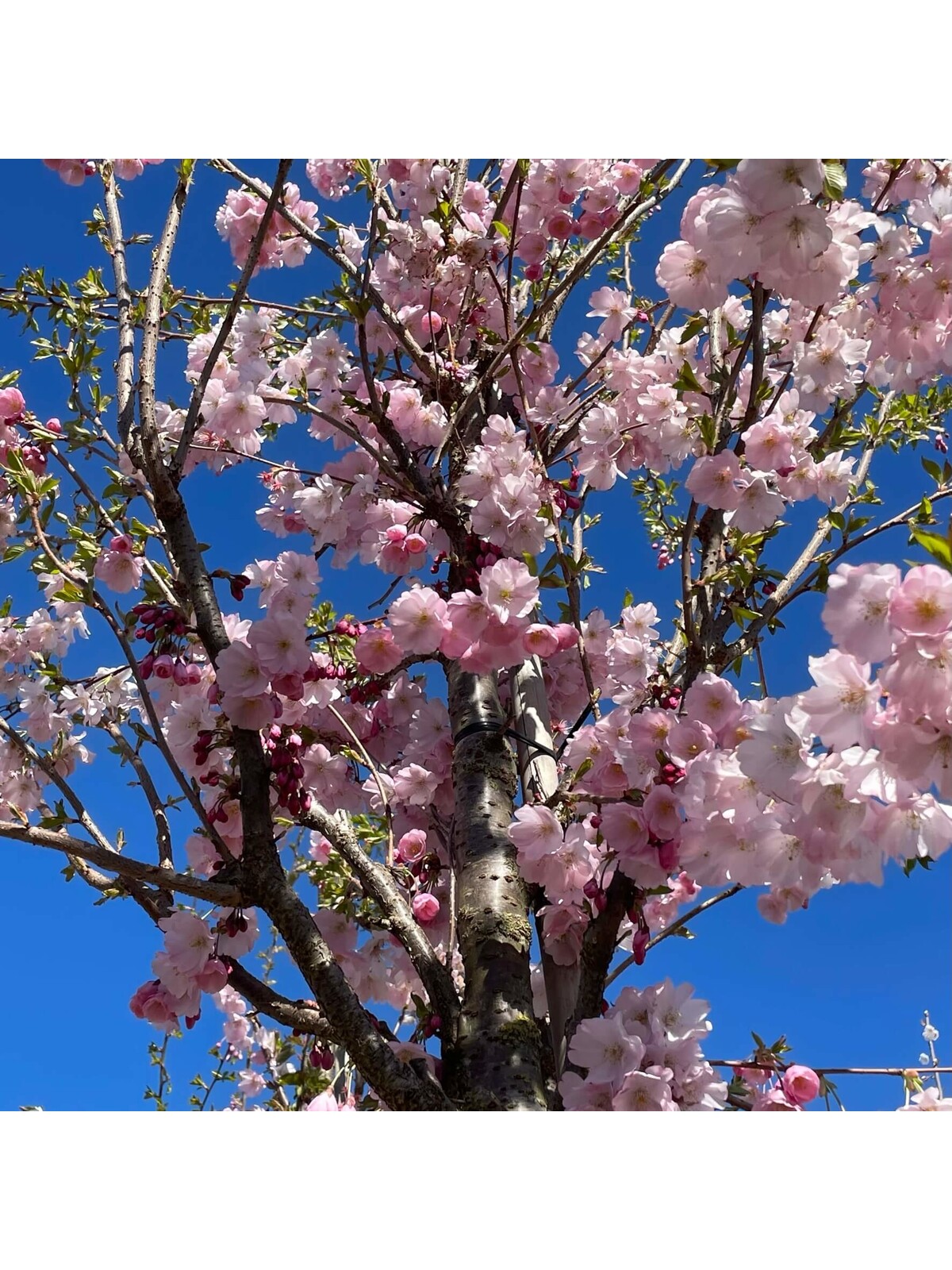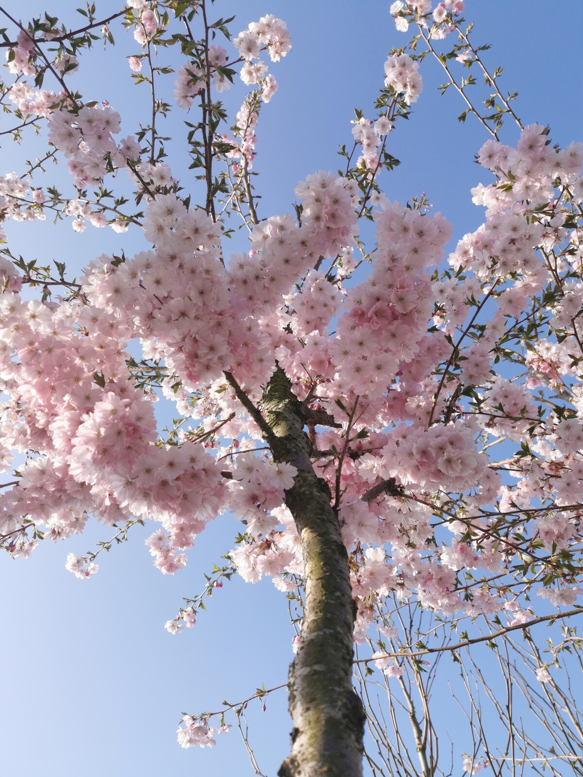 Im Frühling entfaltet die Zierkirsche 'Accolade' eine beeindruckende Blütenpracht mit zarten, halbgefüllten, rosafarbenen Blüten – ein wahrer Blickfang im Garten.