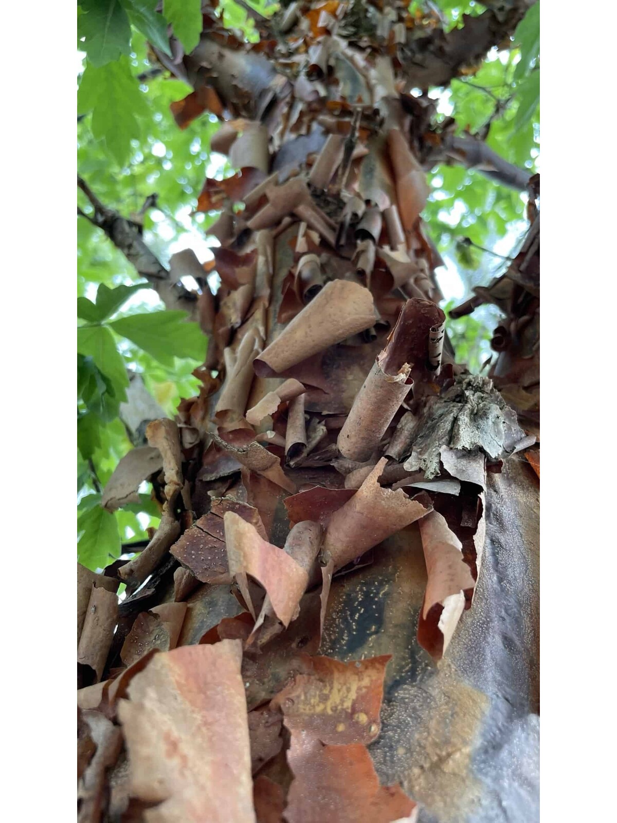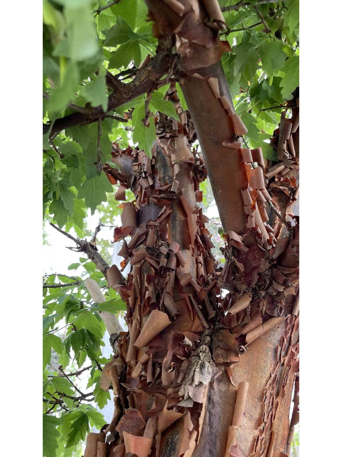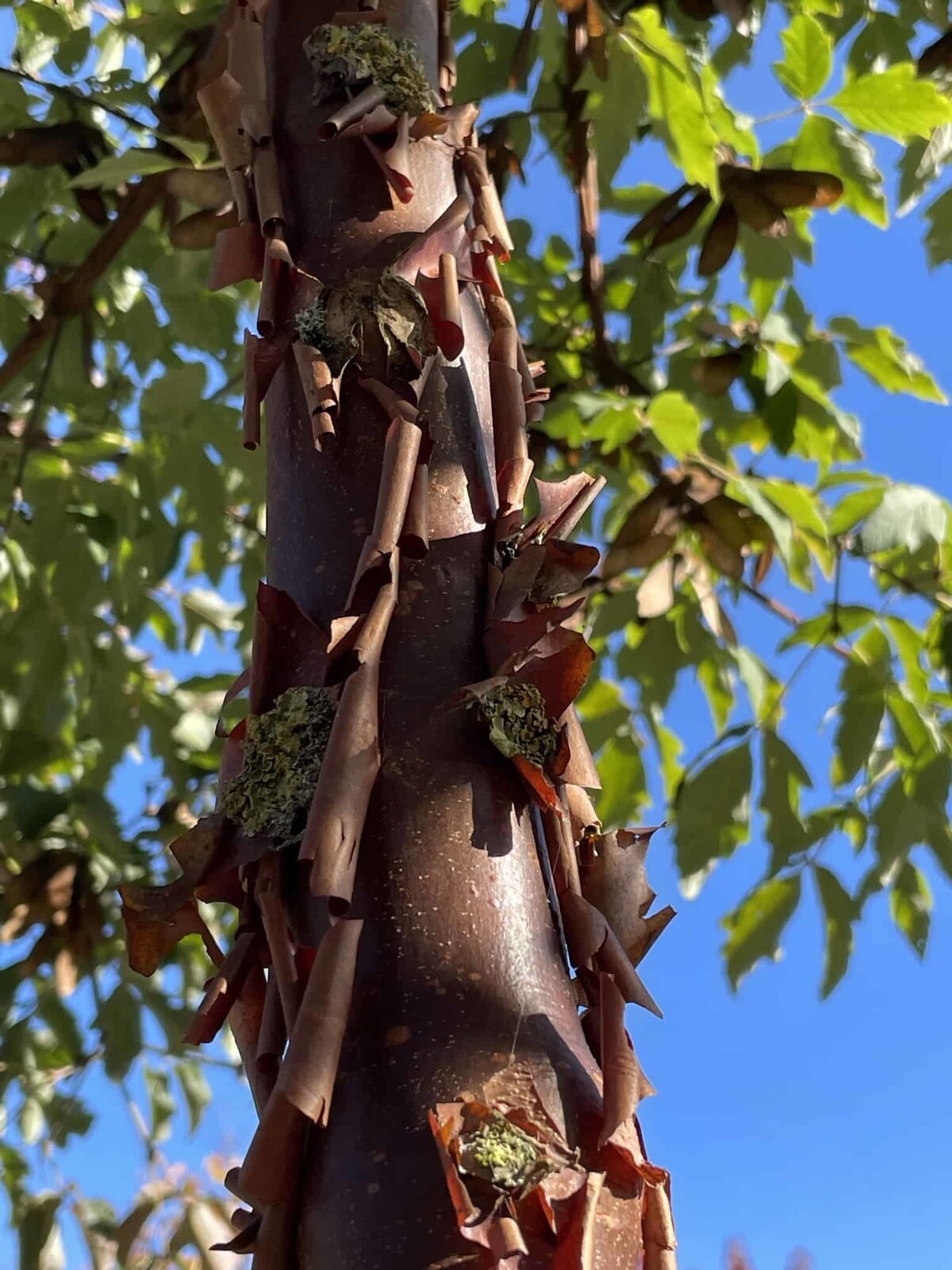 Die faszinierende abblätternde Rinde des Zimt-Ahorns